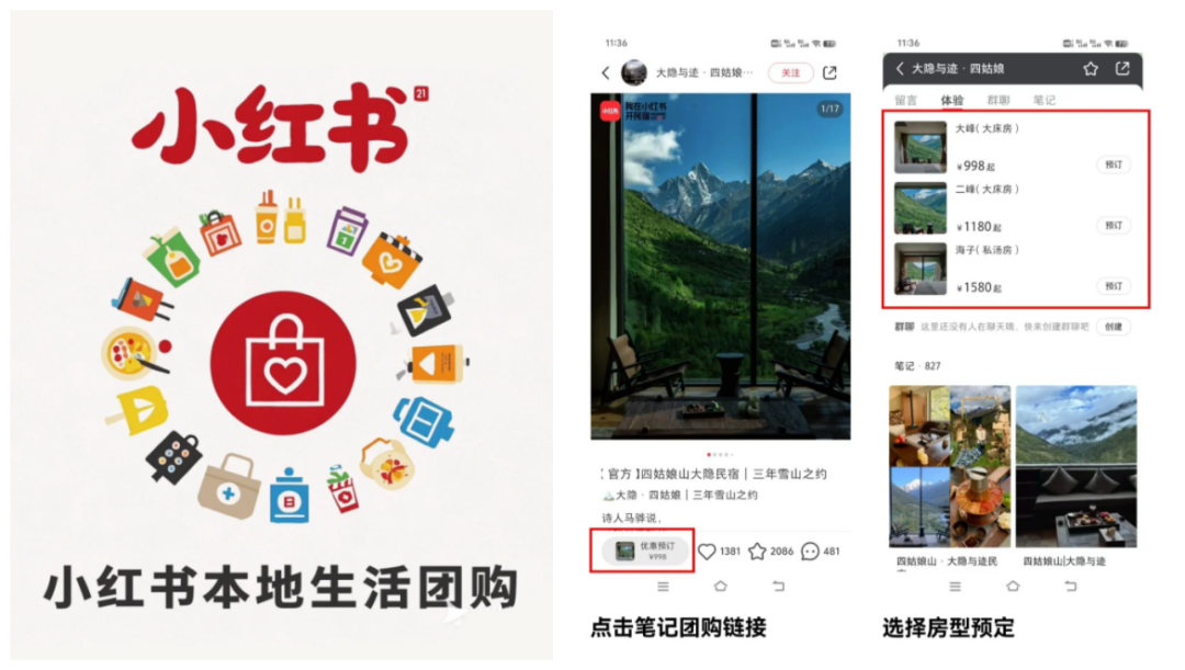 2020年之后,随着露营、周边游等消费的流行,小红书进一步与第三方合作,上线了酒旅预定功能,使得部分民宿、酒店、露营地等消费场景能够在小红书上实现闭环。