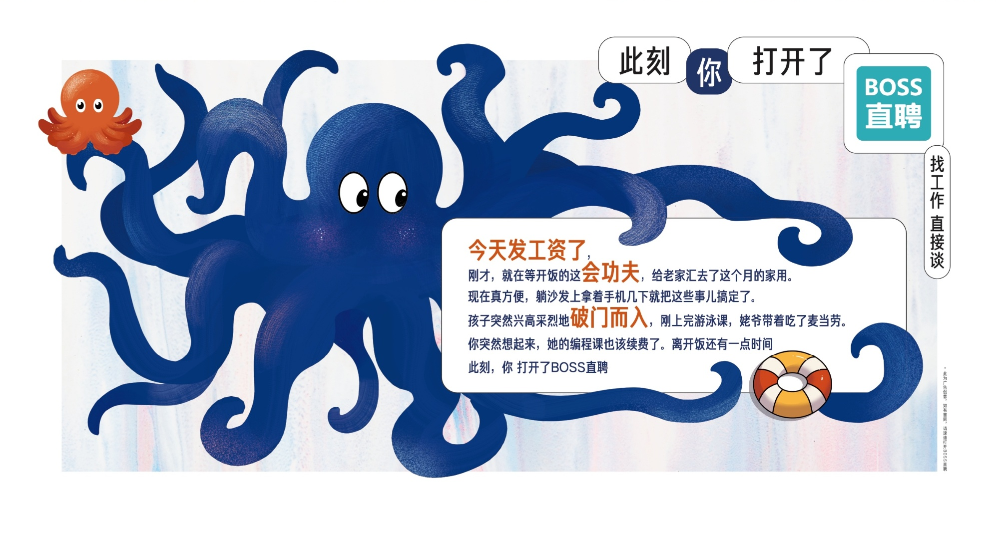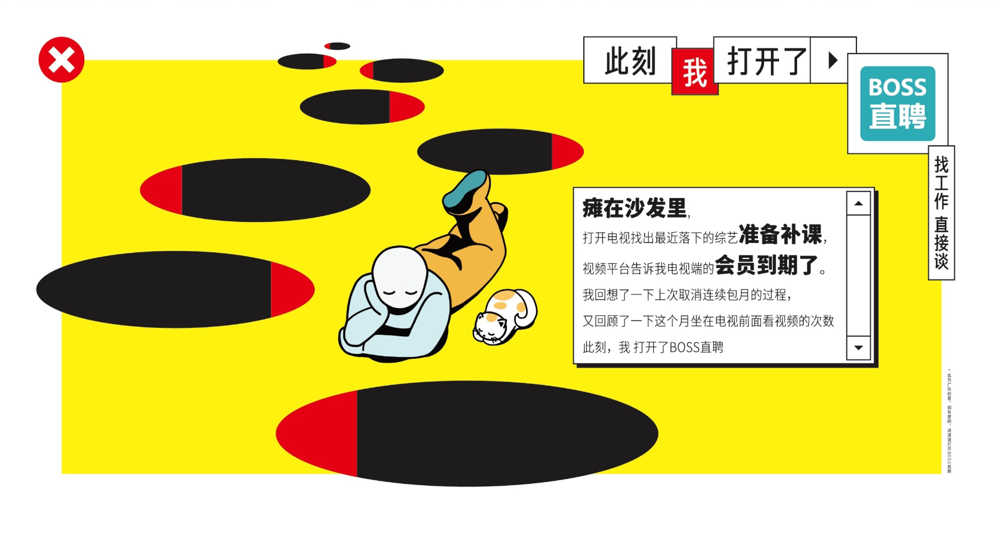 BOSS直聘直击上班族痛点,不仅用打工人日常破防故事汇生动还原大众的职场焦虑,还通过一组殊途同归的对比文案,真实演绎打工群体反复拉扯的离职心态。活人感十足的文字,折射出职场生存的真实困境,帮助品牌构建起「打工人命运共同体」叙事。BOSS直聘巧妙利用这份情感共鸣,将痛点变为催生改变的行动力,自然引导大众「打开BOSS直聘」去寻求新的可能,成功将职场焦虑转化为品牌势能。