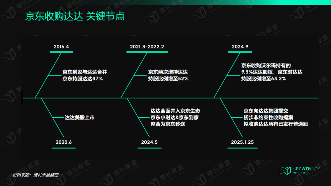 自2024年5月起达达已全面并入京东生态,支持由京东小时达及京东到家整合而成的京东秒送业务。目前,京东对达达持股比例已达63.2%。