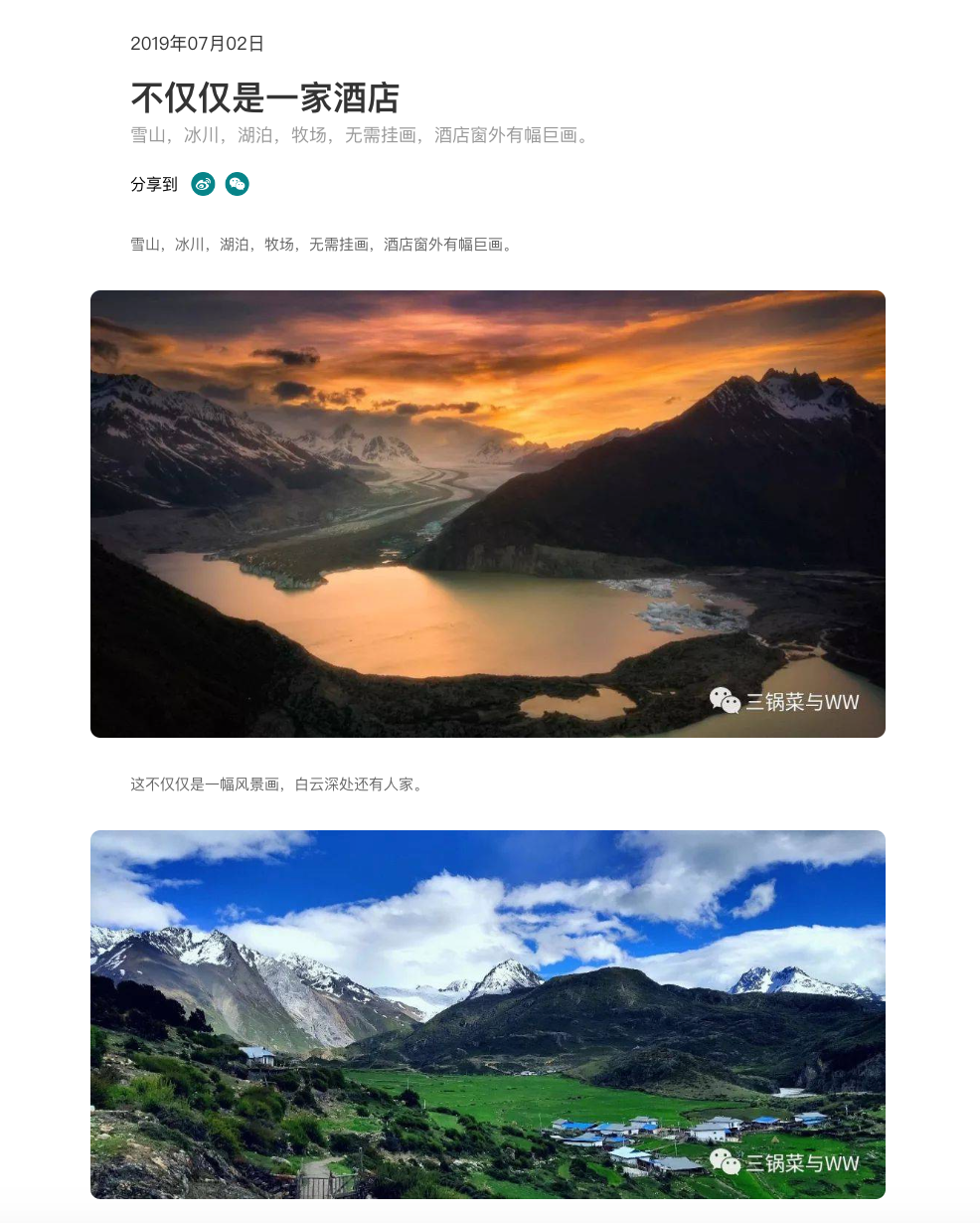我因为这件事很受触动,2019 年 7 月份在博客上写了一篇关于松赞的文章,叫《不仅仅是一家酒店》。在我理解中,酒店只是松赞的一个手段,它想做的还有跟文化、跟乡村的链接。
