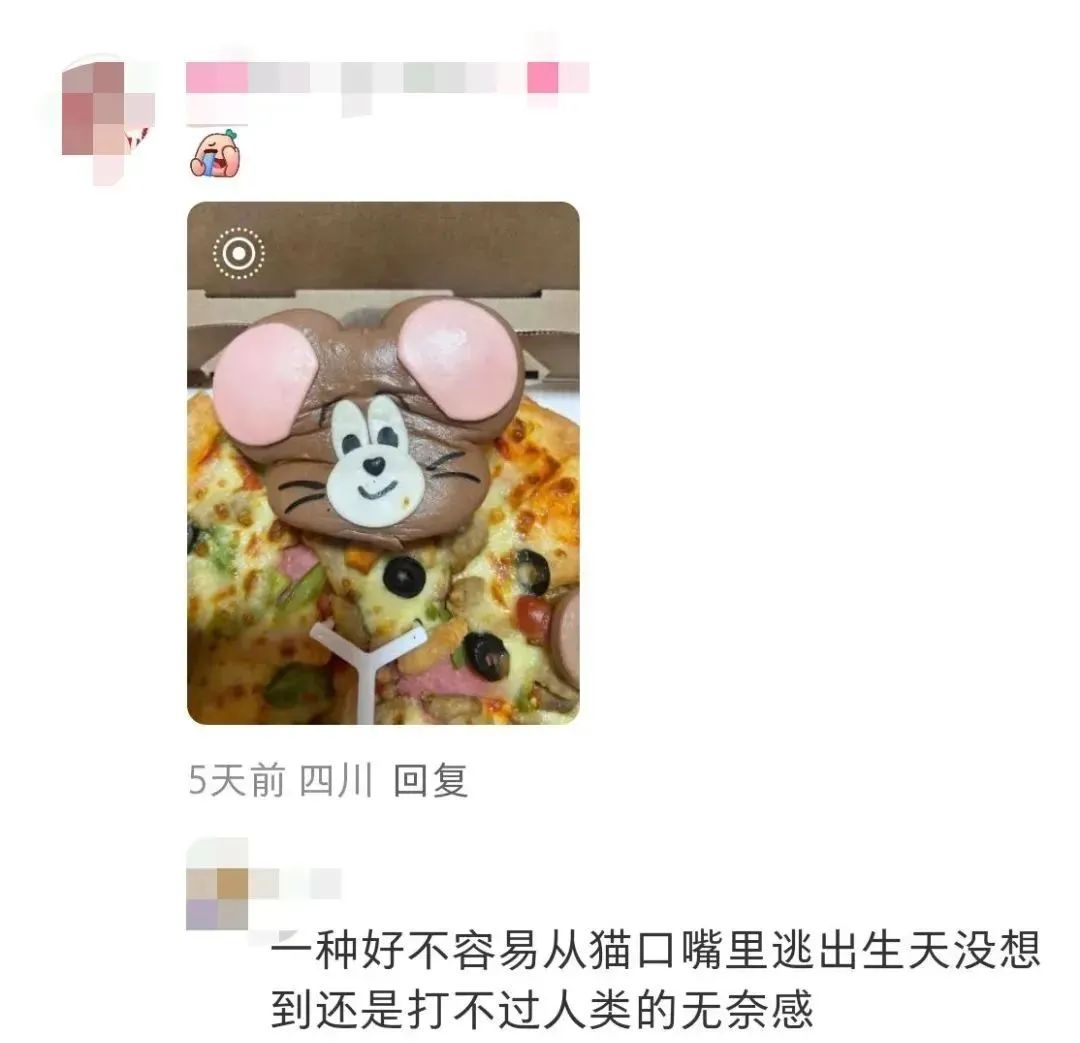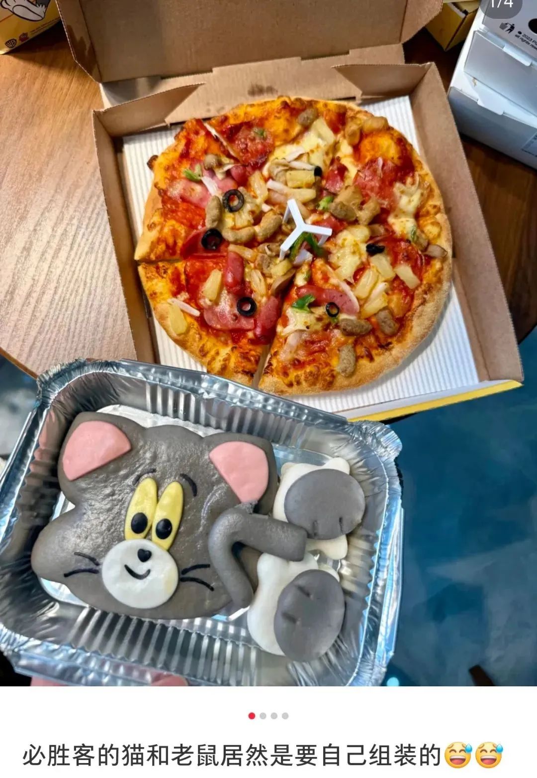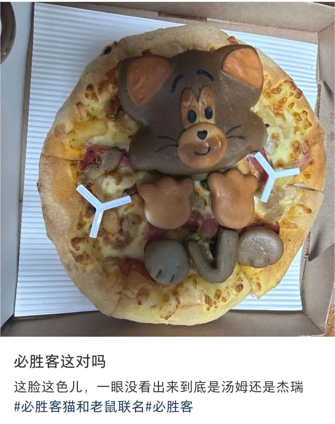 必胜客之前搞了个《猫和老鼠》联名,把汤姆和杰瑞做成小馒头放披萨上。
