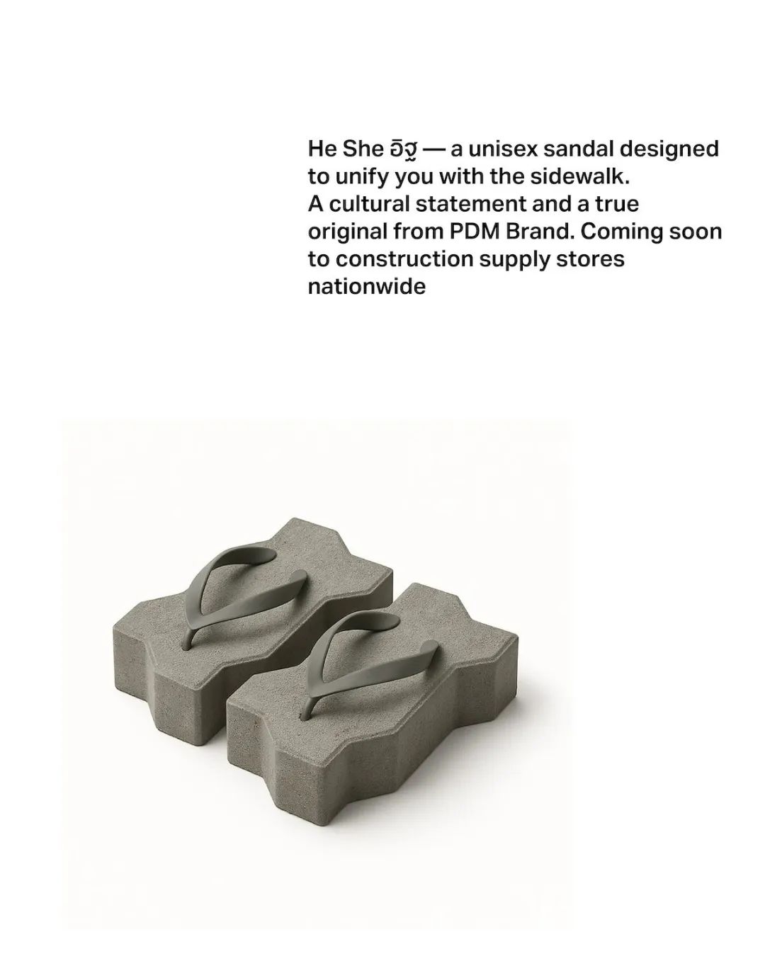 本以为是网友P图玩梗,结果一查,竟然是泰国设计品牌PDM(PDM BRAND ORIGINAL)刚推出的「HE SHE IT」人字拖,直接把人行道的地砖“搬”脚上了!