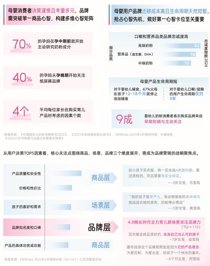 面对精养时代家长层层把关、精挑细选的母婴消费习惯,品牌胜出的关键在于快速建立信任。为此,需构建「商品力 + 场景感 + 品牌认同」三位一体的心智护城河,在宝贵的决策窗口期抢占先机。