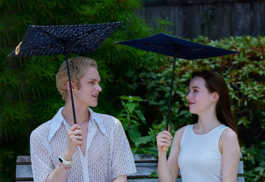品牌负责人伊东洋子表示:“我们跳出传统弧形伞思维,用极简水平造型精准遮挡面部阳光,让男性撑伞更自在。”不过这把小伞仅限在晴天使用。