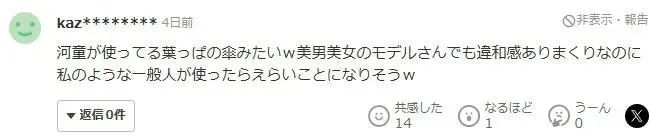 “笑死,像不像河童顶的荷叶伞?模特拿着都别扭,普通人用简直灾难现场!”