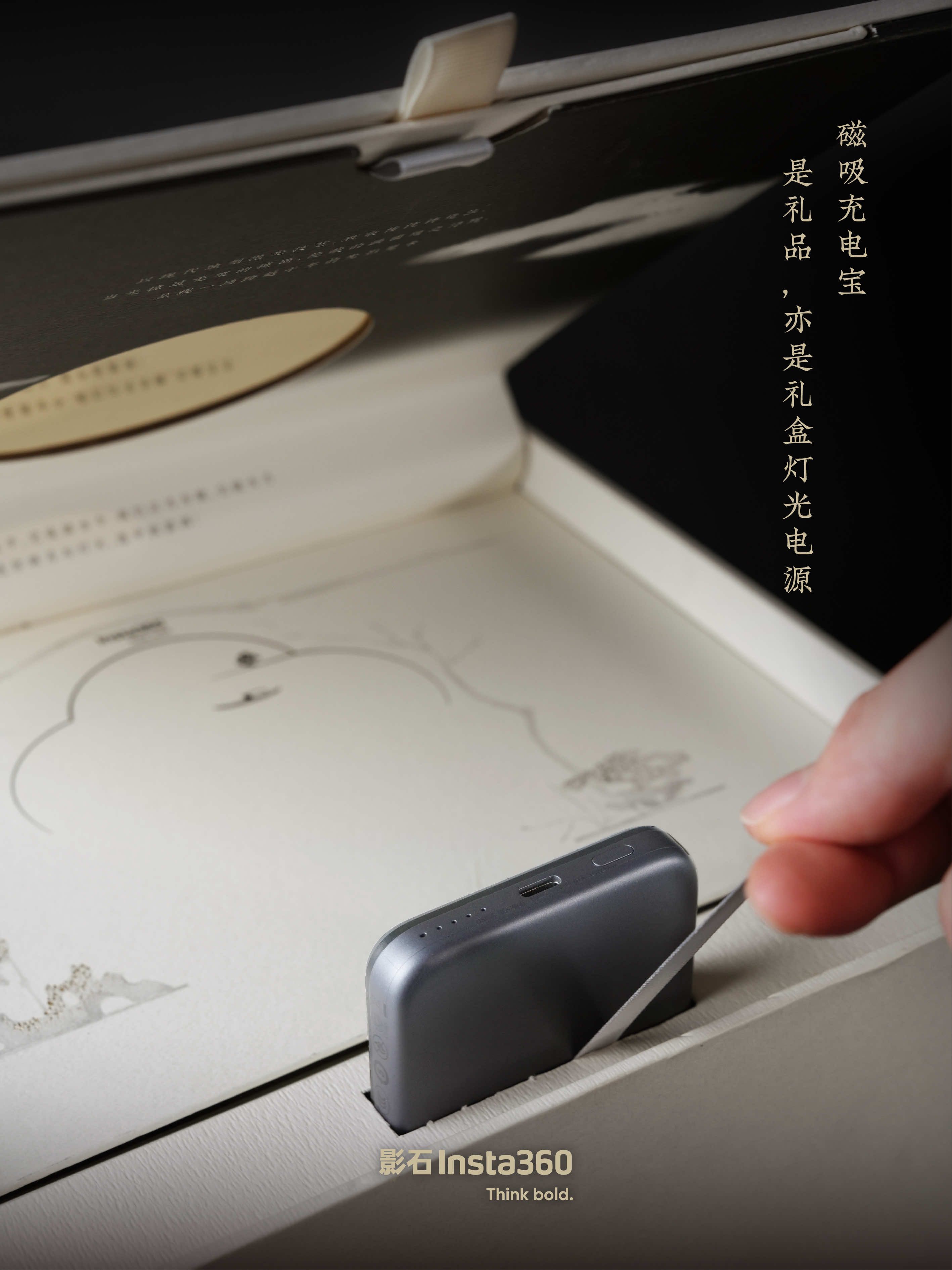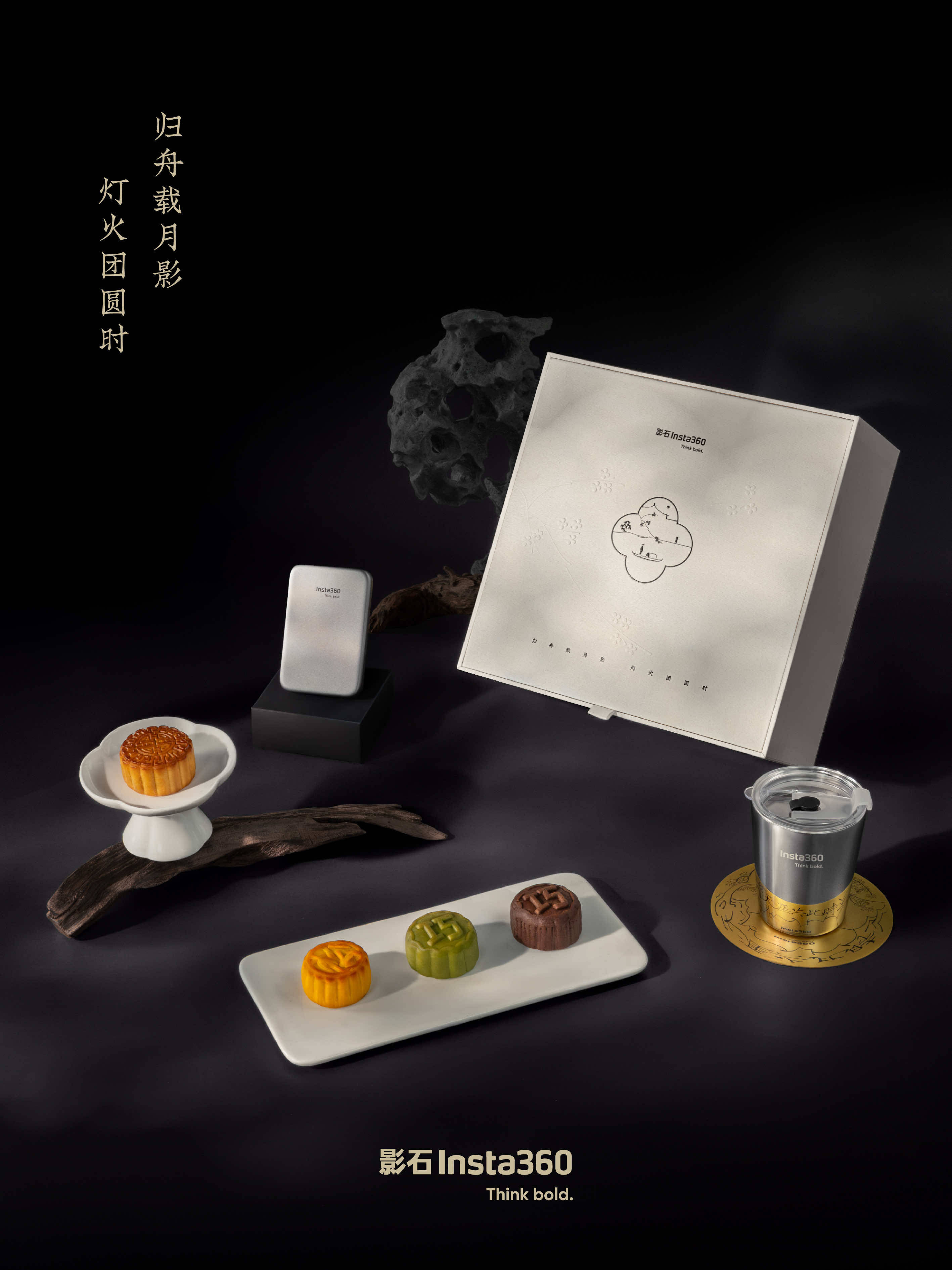 礼盒内含圆月杯垫、镜面杯、5000mAh磁吸充电宝,以及四款月饼。影石携手每日黑巧,推出低糖抹茶流心奶黄和脆皮流心巧克力两款创新口味。