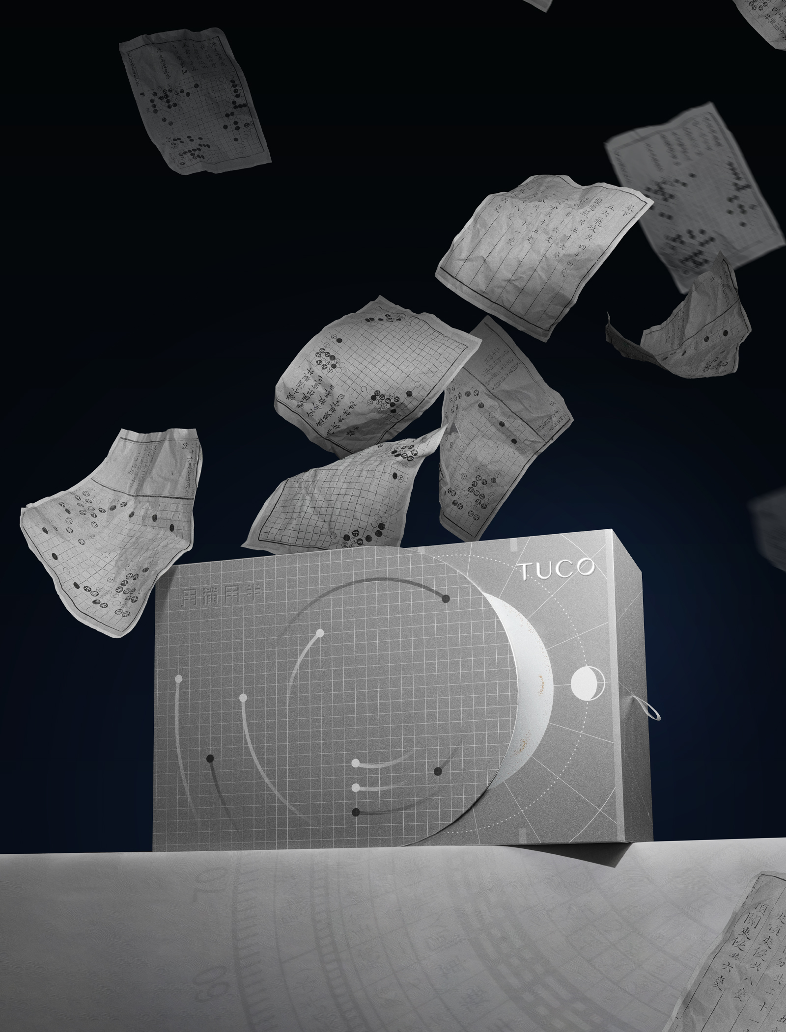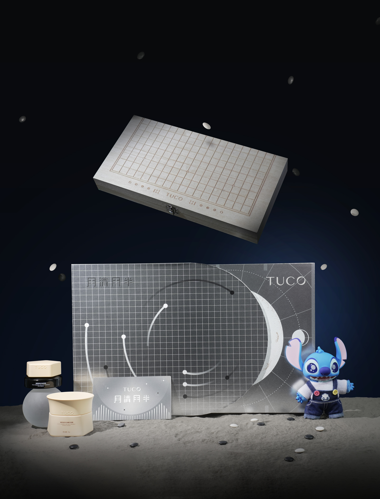TUCO的中秋礼盒以「月满月半」为题,灵感源自“天上月圆,人间月半,月月月圆逢月半;去年年尾,今年年头,年年年尾接年头”,寓意世间圆缺有序、时光轮转不息。