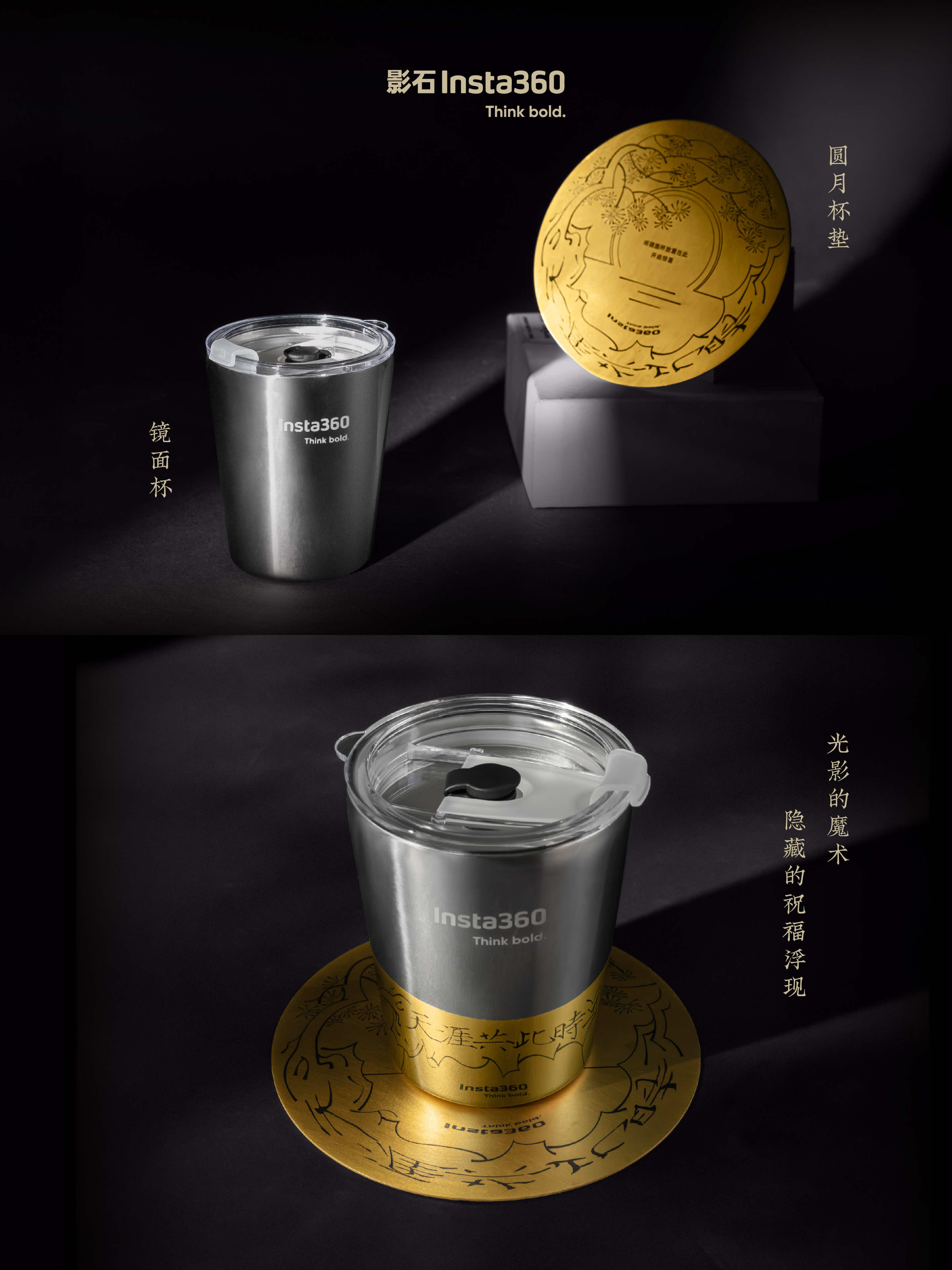 更可“摘月为垫”,取下铜镜作为杯垫,放置镜面杯,杯垫花纹便映照在杯身上,步入“天涯共此时”的诗意境界。