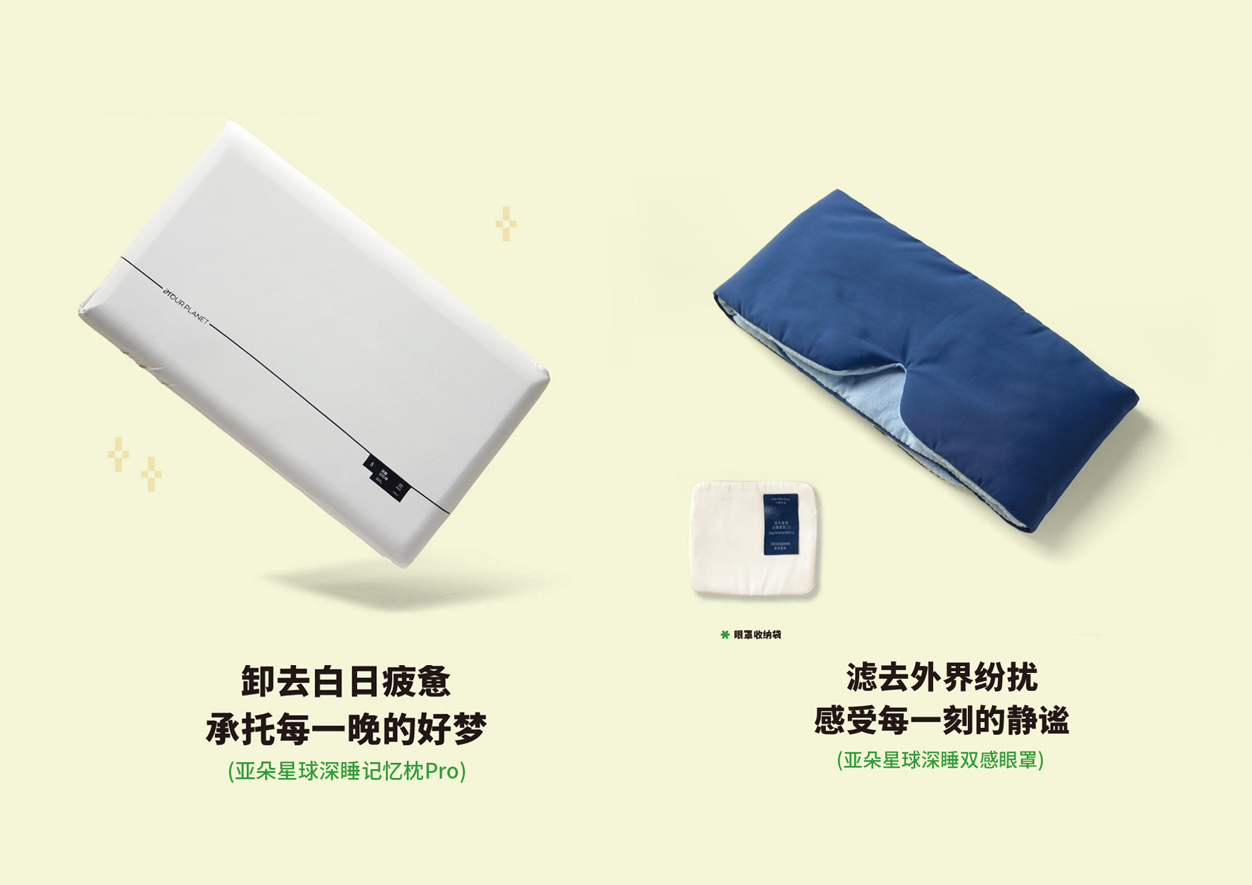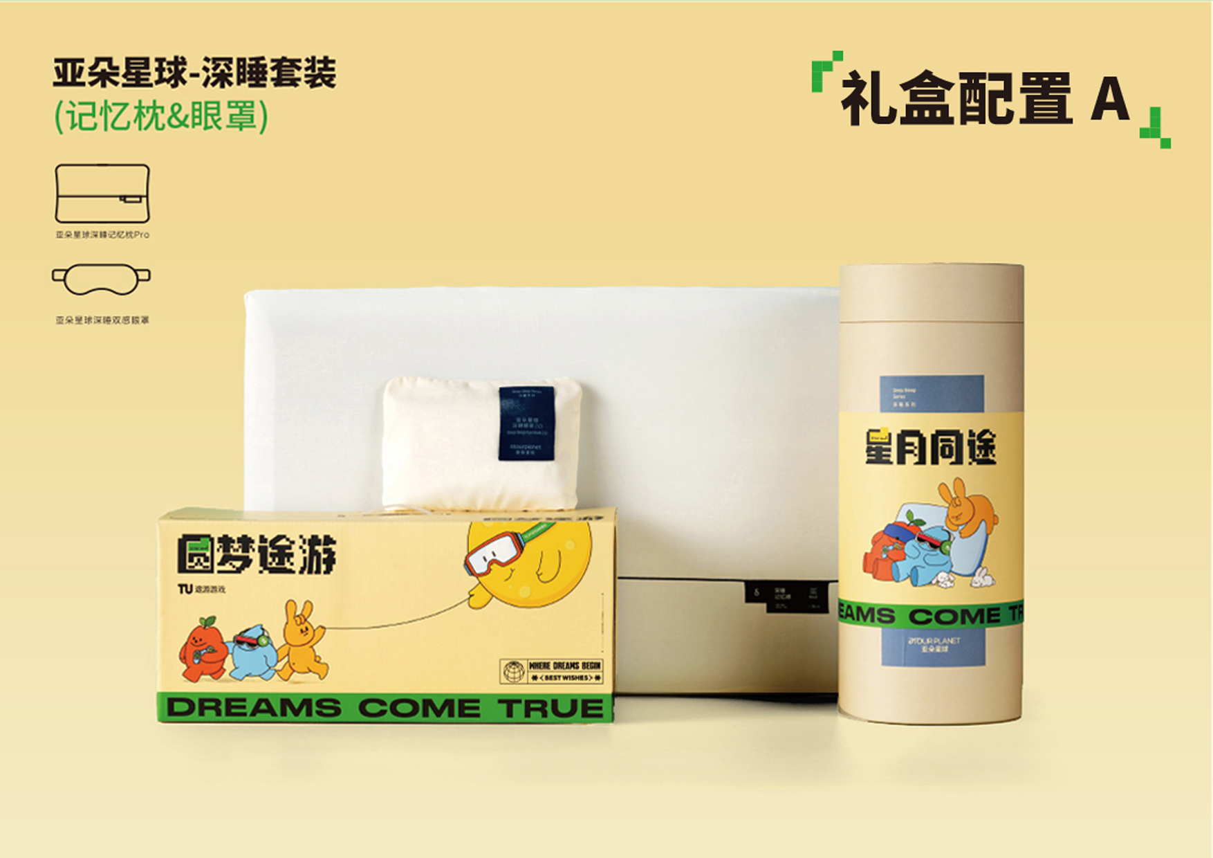 礼盒配置A(助眠圆梦)含亚朵星球深睡系列深睡记忆枕PRO、深睡双感眼罩,为睡眠保驾护航,每个夜晚都是圆梦时间。
