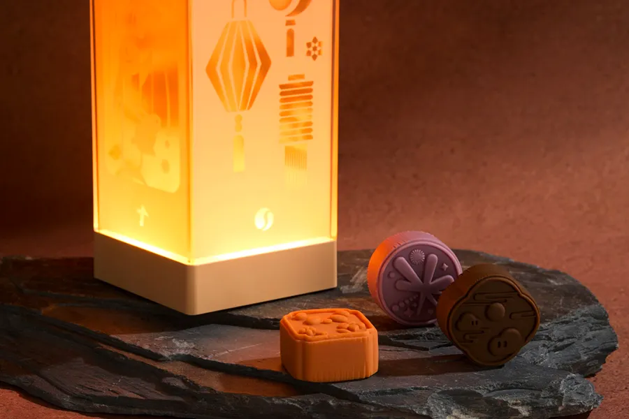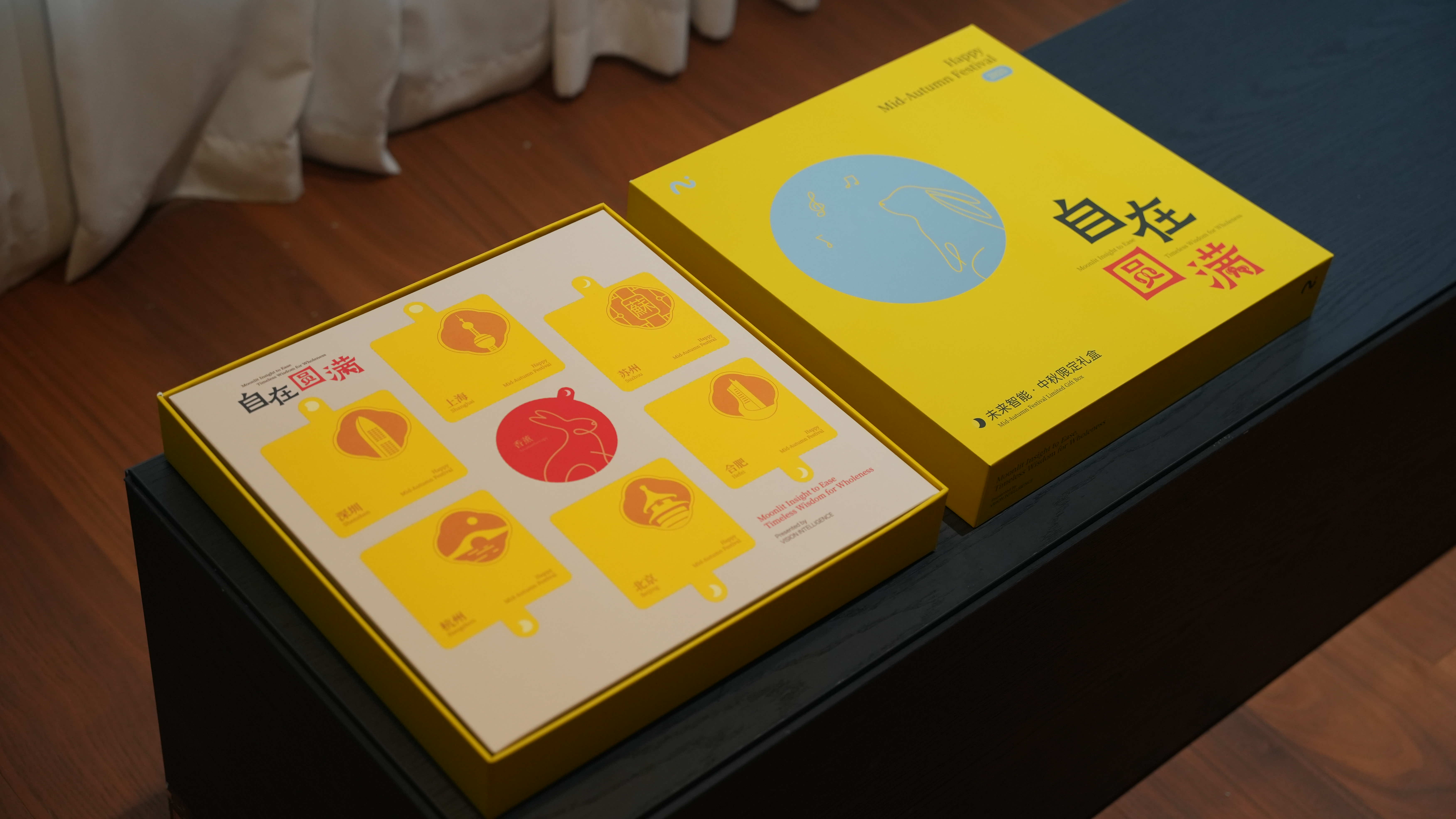 礼盒内有可重复使用的三色氛围灯和六种不同口味的月饼。不仅如此,扫描礼盒内的二维码,既可开启一段沉浸式互动体验,从生成专属AI灯谜祝福,到一键秒解中秋知识库,再到探索全球赏月胜地,团圆变得更生动有趣了。