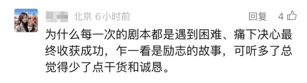 有人认为,老事情讲过好几次了,励志故事听多了总觉得少了点干货和诚恳。