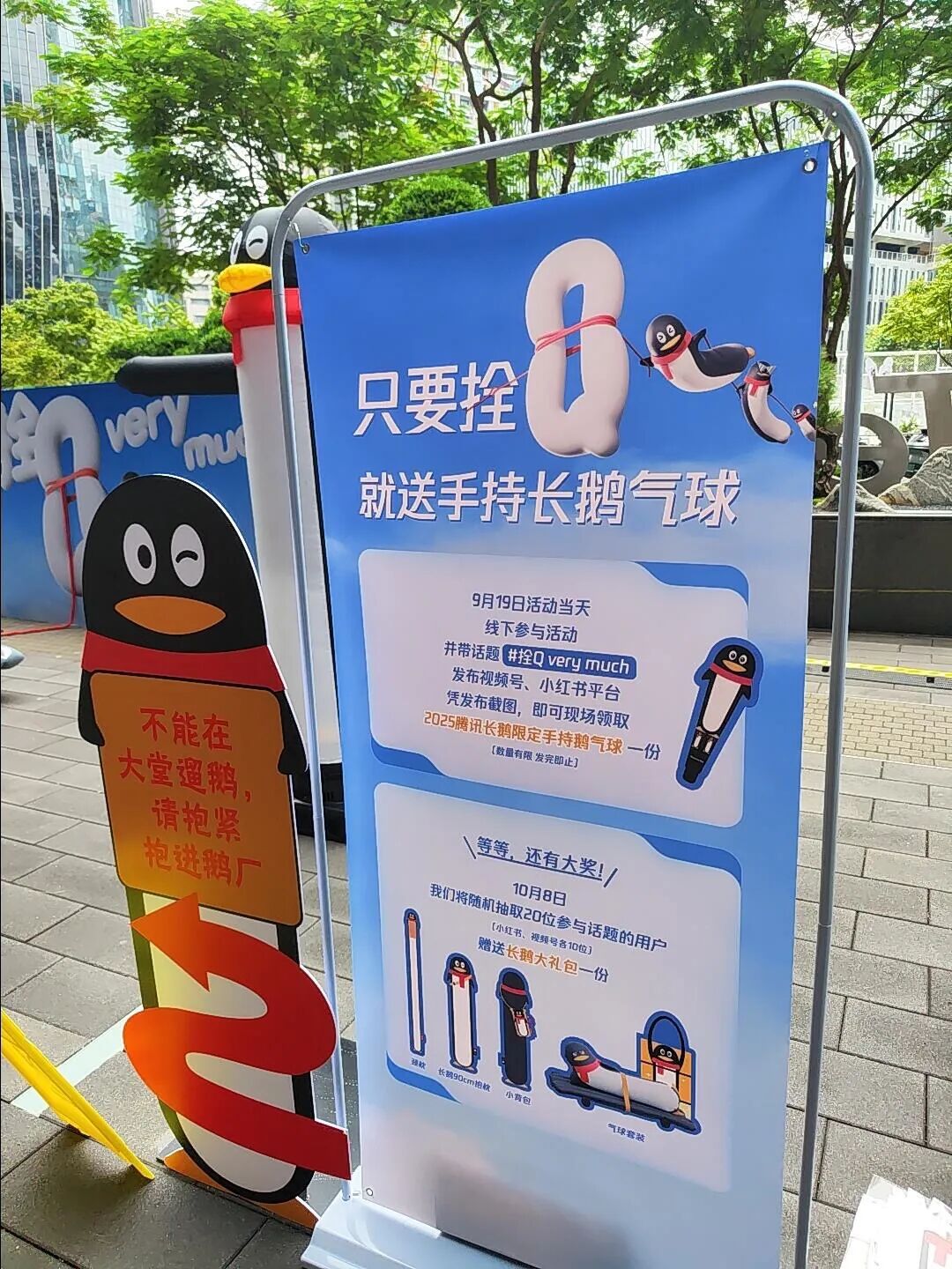 9月23日,为预防台风“桦加沙”的到来,腾讯将公司门口的企鹅QQ用绳子绑好,并在社交平台发布了“拴Q”相关的照片和文章。