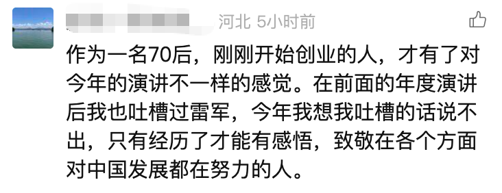 一些创业者看完演讲,表示感悟颇深,向雷军致敬。