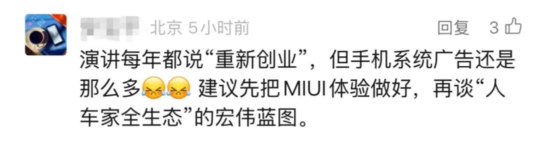 这次看完演讲的网友,希望小米先把产品体验做好,再谈宏伟蓝图。