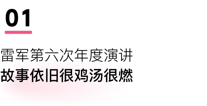 此外,雷军还提到了好朋友凡客创始人陈年的故事,用十年还债十多个亿,55岁转战直播赛道——以此鼓励大家“只要你想,一定能改变”。