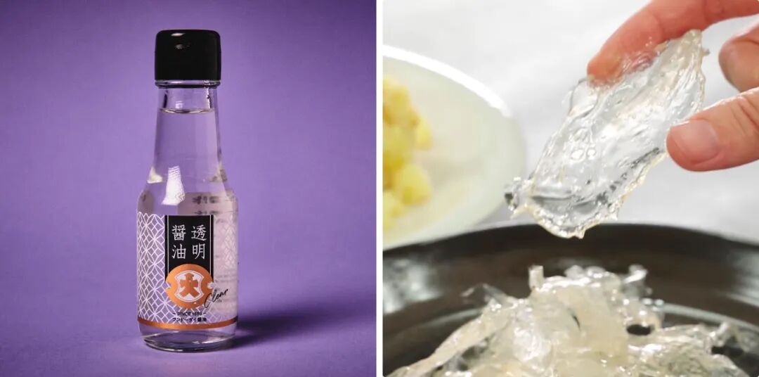 除了水,日本还尝试做过透明酱油、透明布丁、透明薯片。