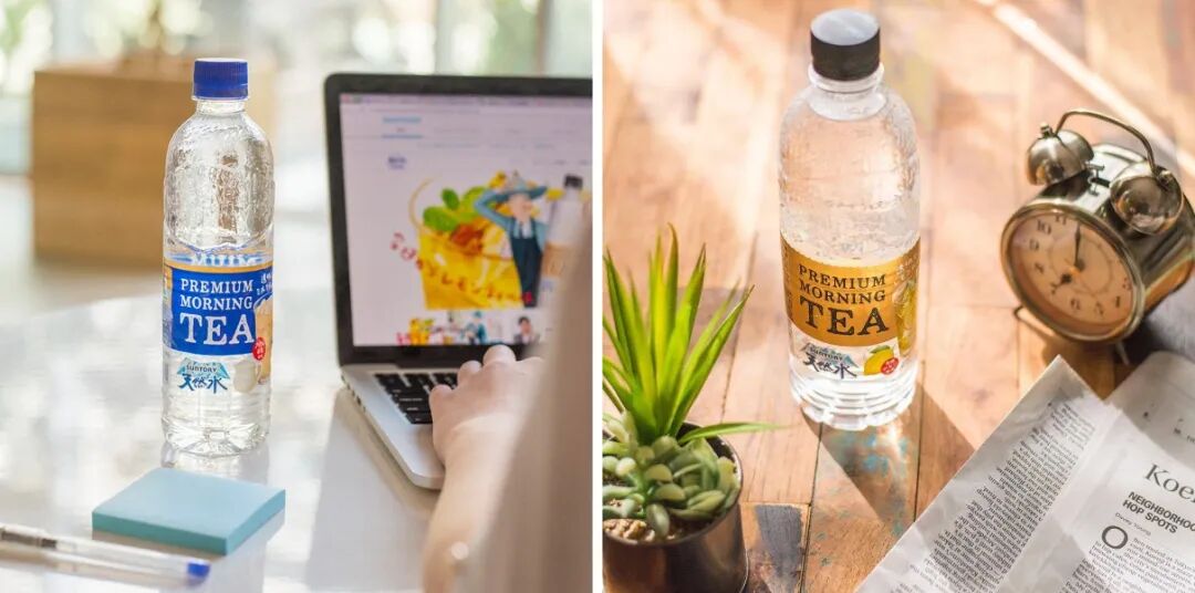 三得利就推出过透明奶茶和透明柠檬红茶,饮品看上去是全透明的,不看外包装,消费者可能会以为这就是水。
