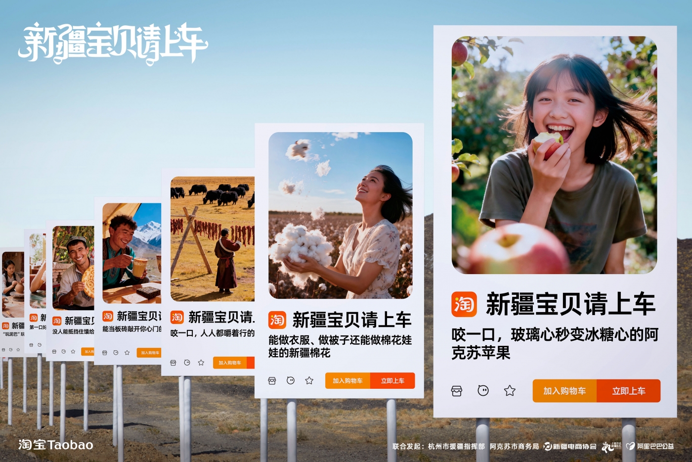 淘宝还在现场设置了宝贝互动打卡框,巧妙将合影留念的游客变为传播的一环,让每一次分享都是一次为新疆的宝贝打call,助力它们走出家乡,走进更多人的视野。