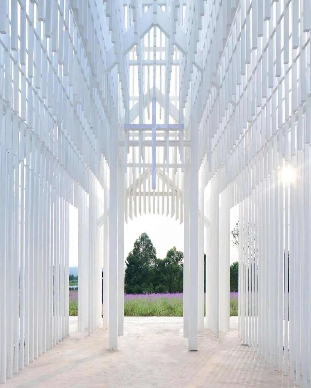 一面实墙都没有?眉山“最通透”教堂,无墙无顶全靠600根白杆撑起