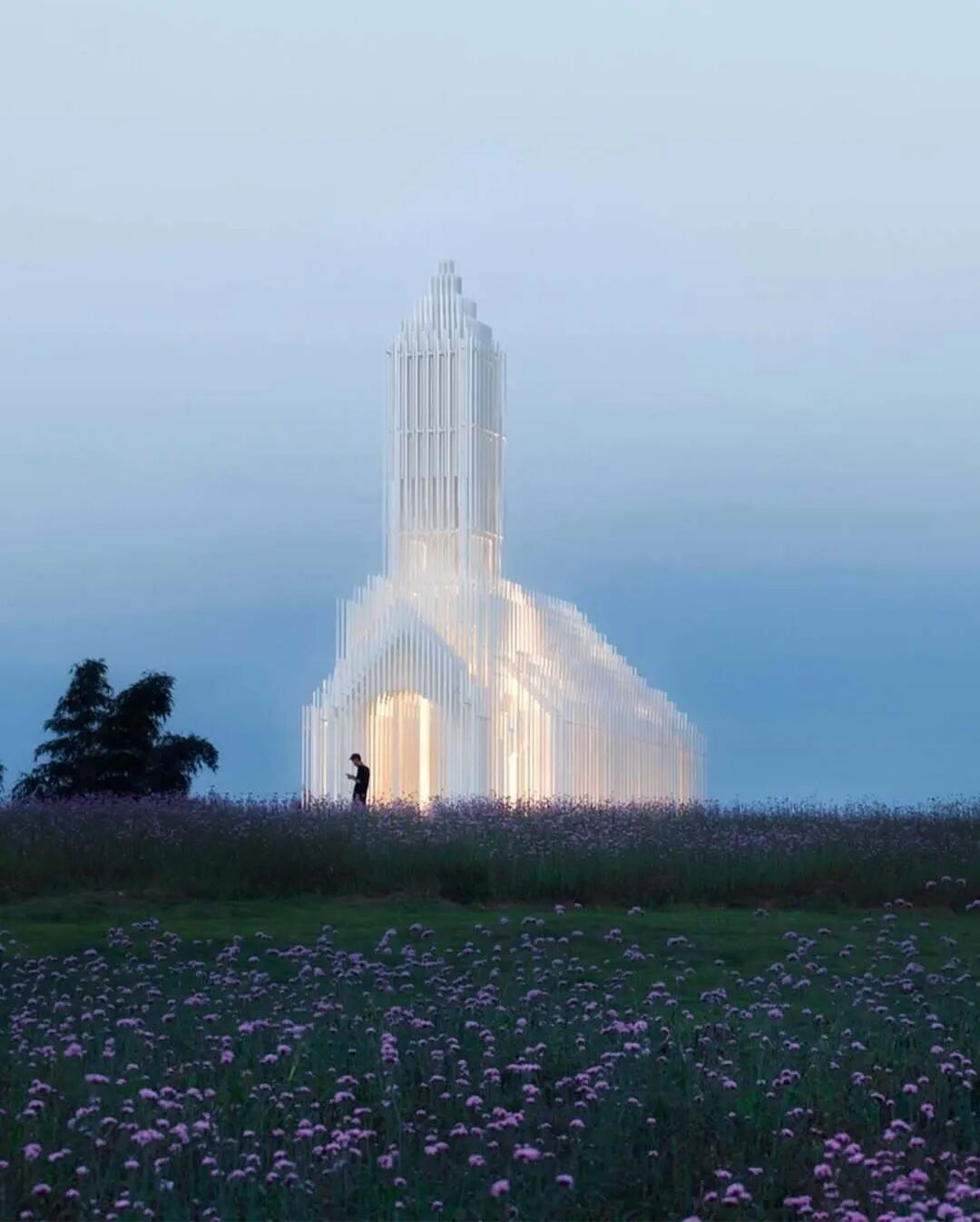 白天它是纯白色的教堂,到了晚上,里面灯光一亮,它又变成了一个柔和的发光体。