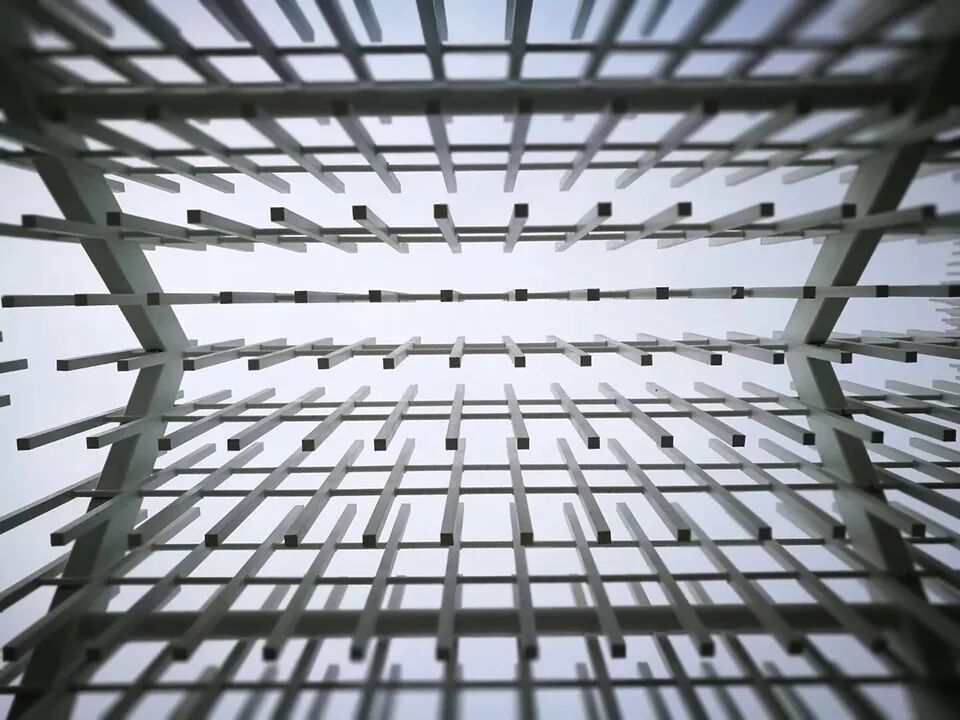 它浑身都是镂空,根本找不着一面完整的墙,全靠600根白色铝管支撑!