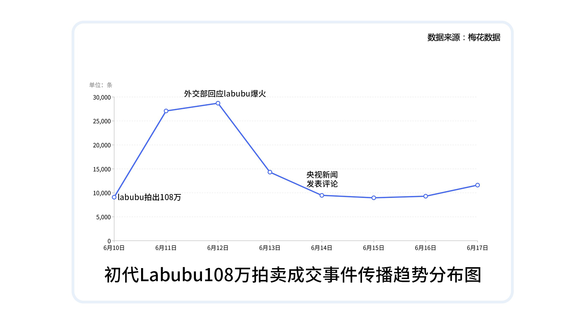 2025年6月10日,泡泡玛特旗下IP LABUBU的初代雕塑作品在永乐春拍中以108万元(含佣金124.2万元)成交,创下该系列全球拍卖纪录,同场另一作品亦以94.3万元成交,专场总成交额达372.54万元。此天价拍卖事件成为引爆点,迅速叠加了国际明星(如蕾哈娜、凯特·布兰切特)带货、海外抢购热潮及泰国官方荣誉等多重热点,推动LABUBU升级为现象级文化IP。事件获得央视、新华社等央媒正面点评,甚至得到外交部发言人回应,实现破圈传播。然而,在热度与股价飙升至顶峰后,公司高管密集减持股票的行为也引发了市场对品牌长期价值与资本短期套利的争议。