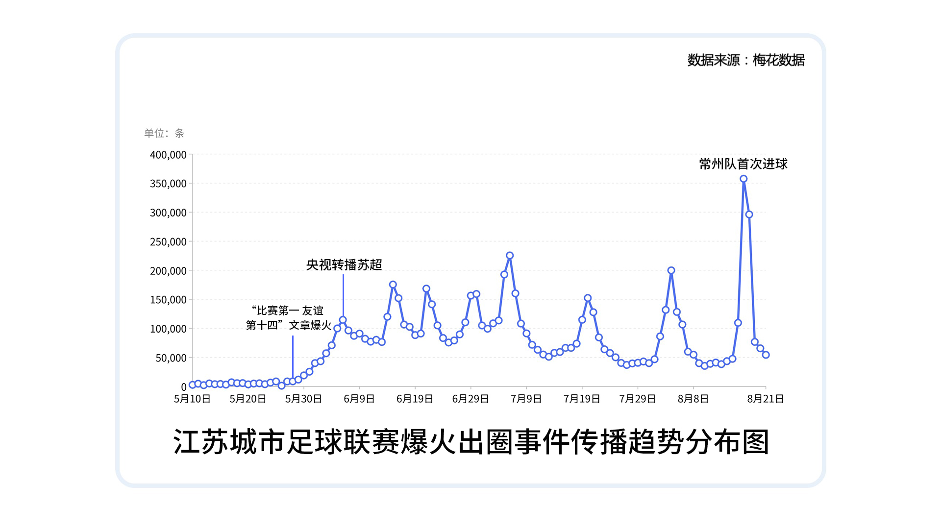 基于梅花数据公关智能体分析,“江苏城市足球联赛爆火出圈”事件的舆论影响极其积极。首先,赛事直接拉动了主场城市文旅消费(如某轮次商业销售额环比增长48%),经济效应显著。其次,以“南京发布”为代表的官方账号主动玩梗,成功打破政府刻板印象,实现了从地方到全国的破圈传播。最终,赛事精准激发了市民的地域归属感与参与热情,获得了高度正向的社会情感共鸣。