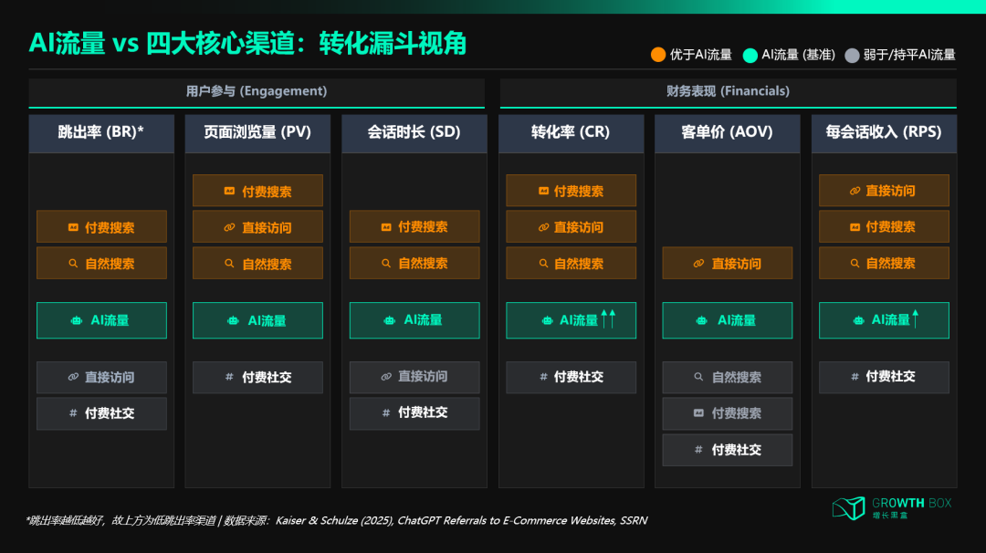 更重要的是,在本次研究的时间窗口内,AI渠道的转化率和每次会话收入增速远远超过所有渠道,未来差距将被进一步拉大。