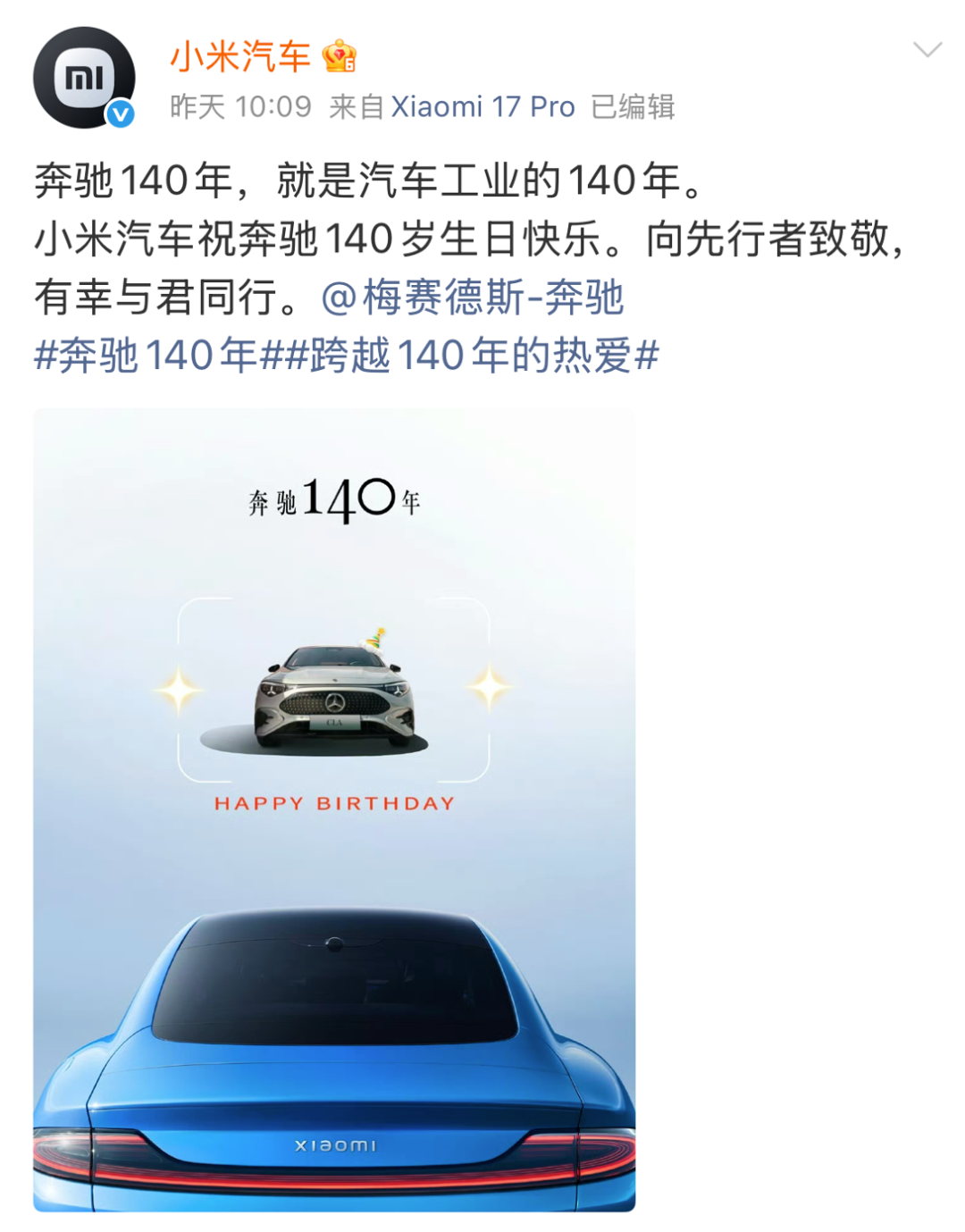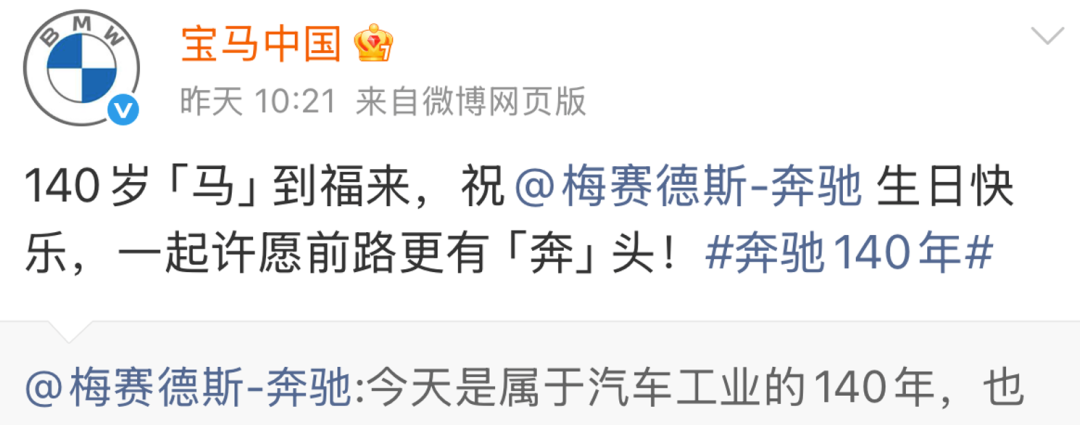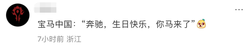 ?有网友在评论区替宝马回应:奔驰,生日快乐,你马来了。
