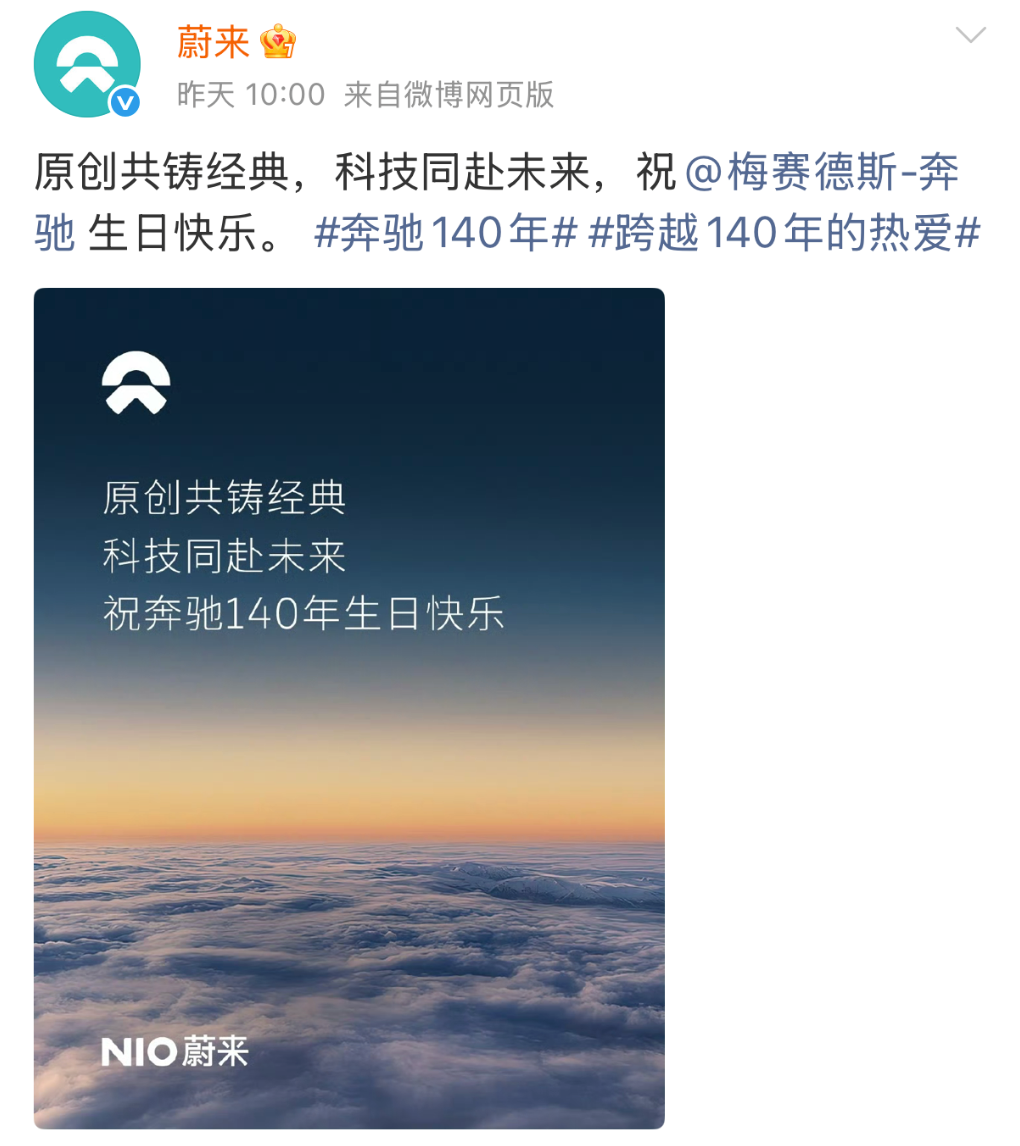 理想、小米、蔚来、小鹏、大众、问界、智己、smart、北汽集团、长城汽车等品牌也都发布微博送上祝福。