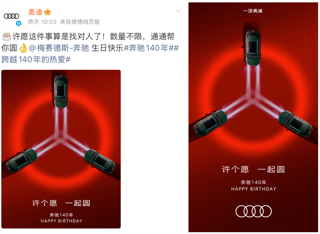 实际上火药味没这么浓,宝马也就淡淡地在微博发了个话,也没做海报。网友倒是想再磕奔驰宝马CP100年。