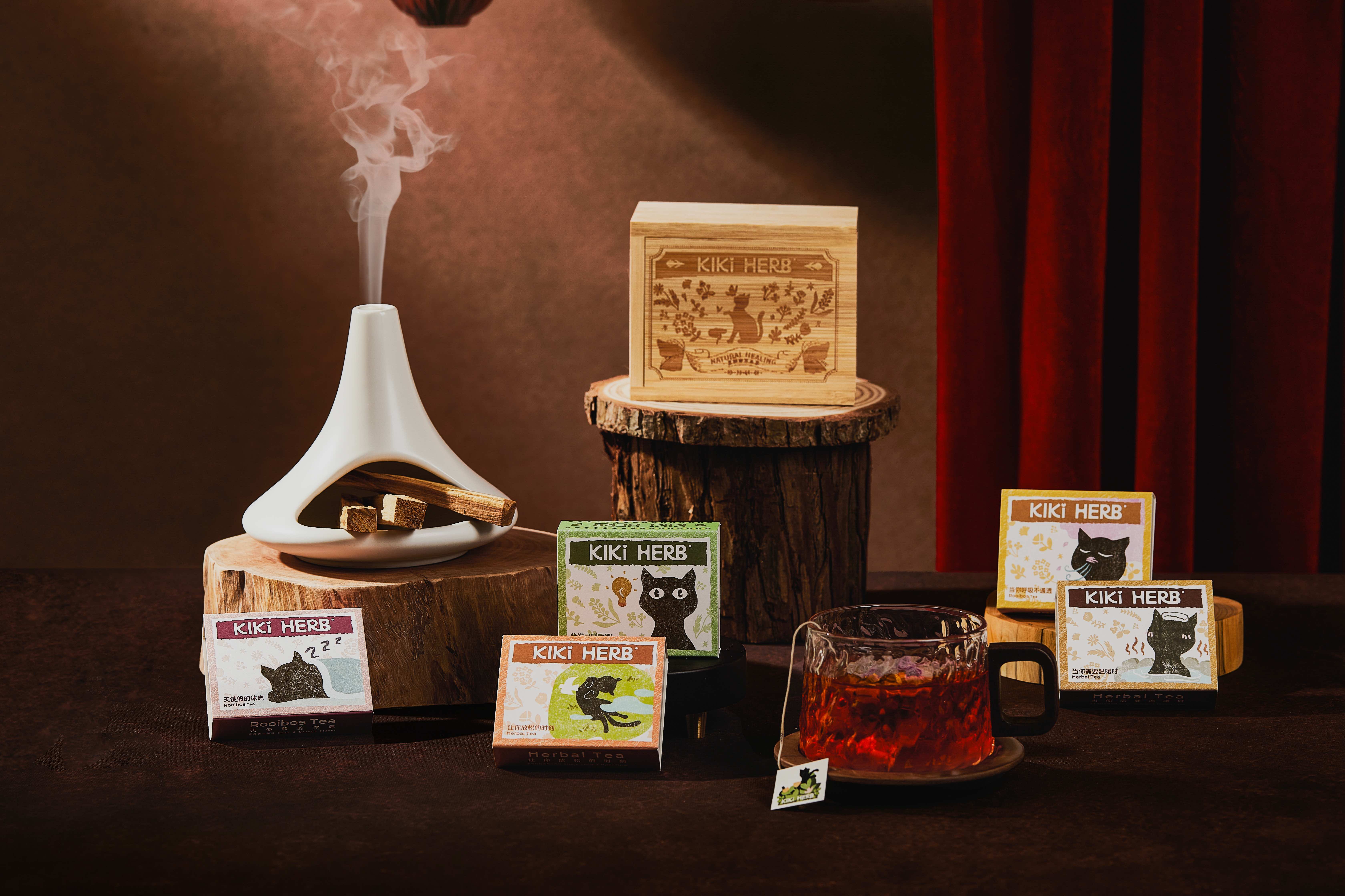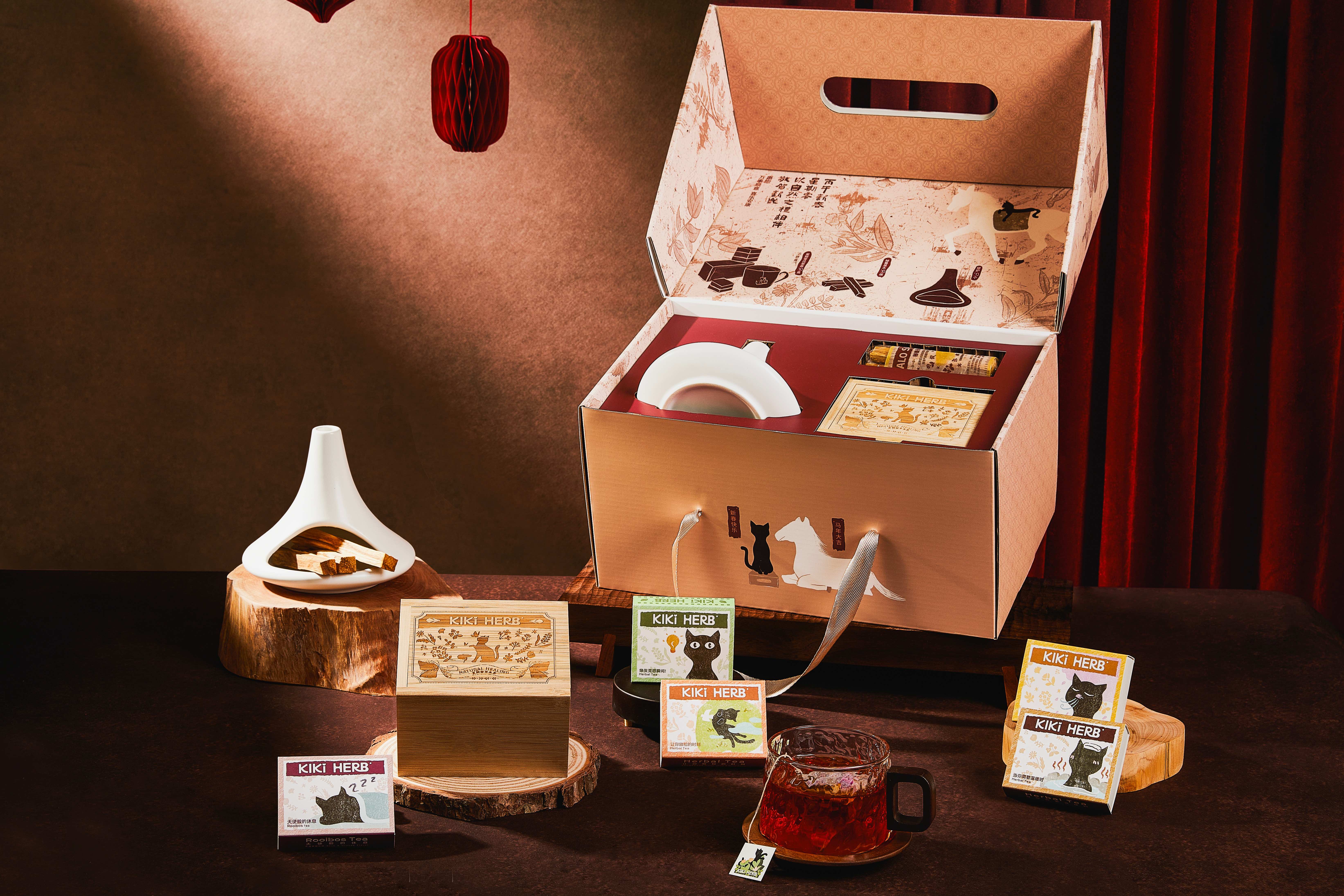 礼盒中,Kiki Herb五款自然茶各有心意——安稳陪伴、清澈唤醒,换季呼吸不通透时的温柔守护,手足冰冷时的缓缓回暖,再到舒展情绪的放松时刻。