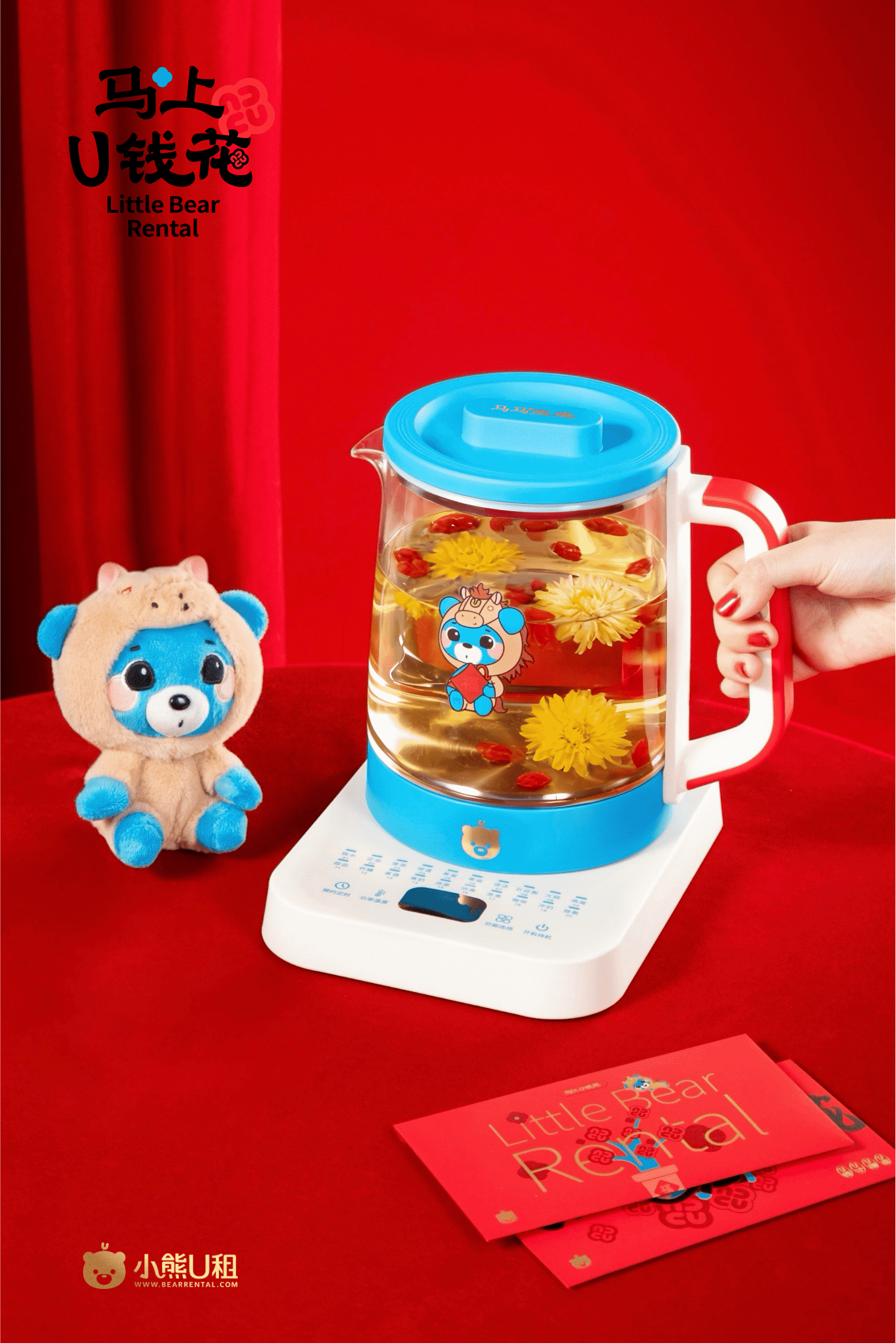 小熊U租愿你新岁乘马年限定“小熊马”奔赴新程,执“马马壶壶”解锁佛系养生,凭“马上U钱花”红包开启暴富篇章。