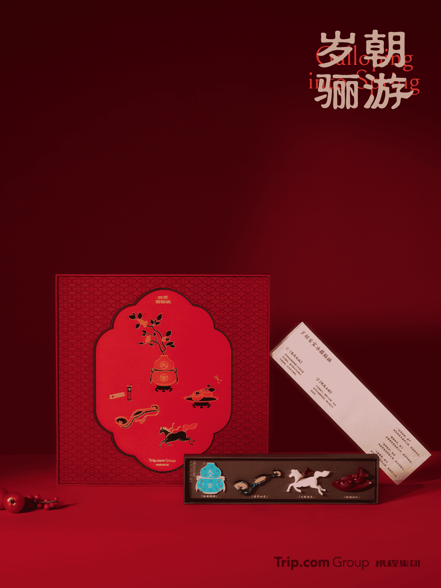 礼盒采用精巧的结构,轻轻转动即可呈现动态图案变化,寓意"骐骥驰骋,灯转迎春",开启时来运转的新年序章。
