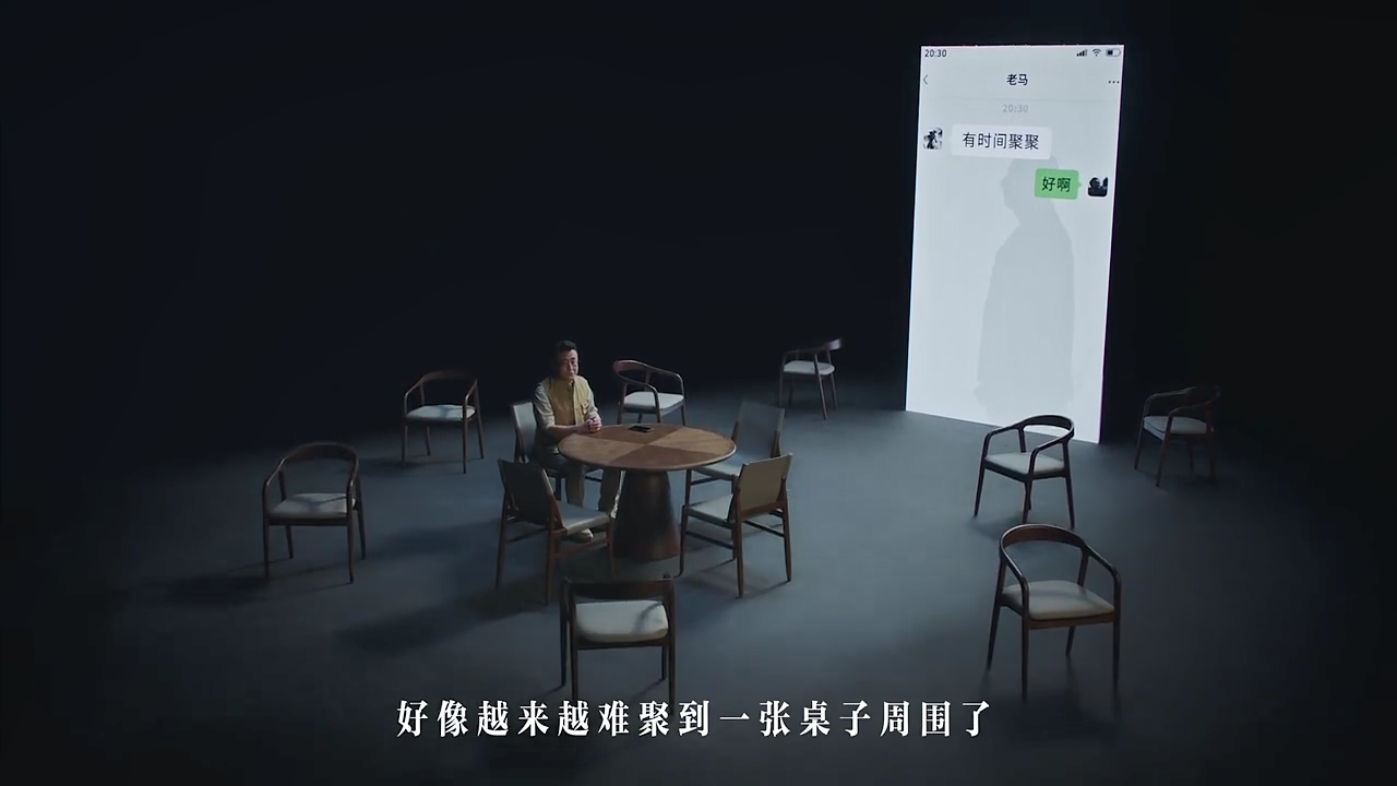 在品牌发布的短片中,窦文涛以其标志性的温润讲述,道出「聊天记录」里隐藏的时代症结:父母的长句关心换来子女的短句敷衍;朋友发来的节日祝福带着千篇一律的空心感;省略句引发猜忌、反问句导致怄气,每个场景都直击人心。
