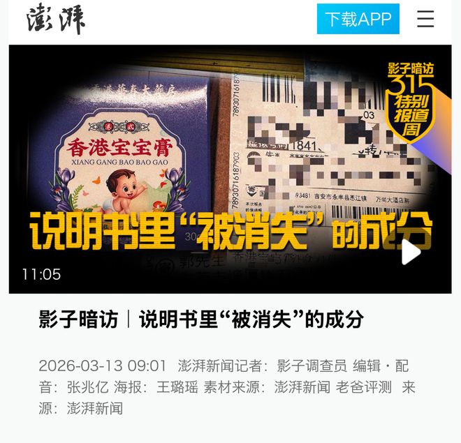 在澎湃新闻的“作者”一栏,竟然还有“老爸评测”。因为在这篇报道中,“老爸评测”重度参与了,从粉丝收集疑似问题产品,以及初步检测上。