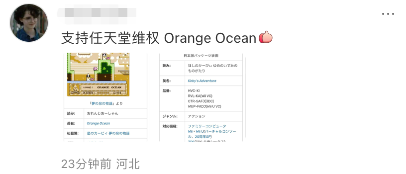 还有人举例“橘子海”并非乐队首创,华为使用不构成侵权。在1993年任天堂发行的星之卡比某款游戏中,就有一个关卡叫“Orange Ocean”。另有无锡、青岛等多处海边落日景观被称为“橘子海”。