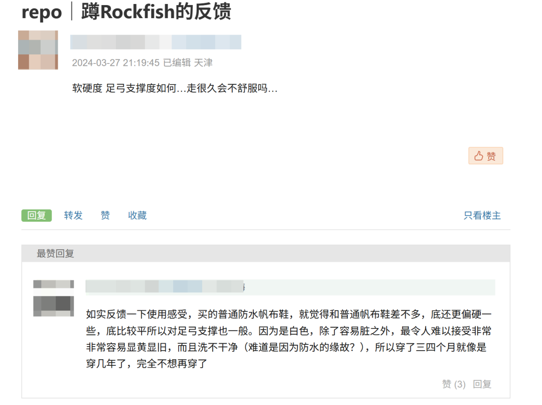 当被问及是否期待Rockfish赔偿时,小洁提到“我可能会更在意这个品牌后续能不能改进一下他们的产品设计。假如说不能在产品本身做设计的话,他们也可以送一些防滑垫之类的,至少拿出诚意去杜绝这种情况的发生。”