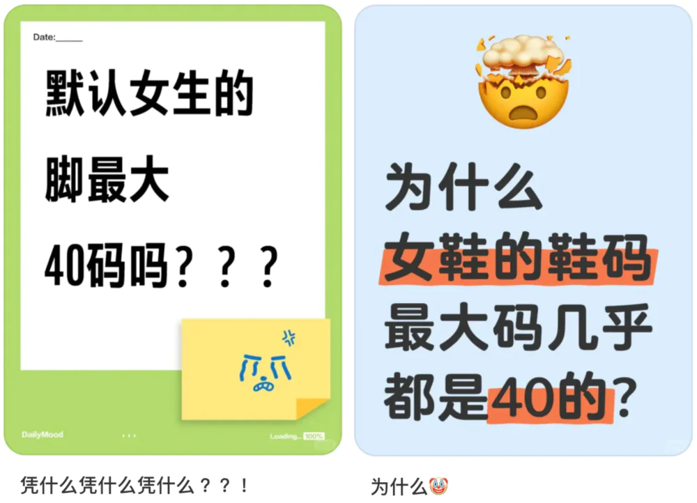 大码女性的处境更艰难。国内社媒平台上,鞋码超过40的女性率先发出“无鞋可穿”的呼声。女款运动鞋的最大码往往止步于40码且长期缺货,“想买大码只能被迫选择男款”。