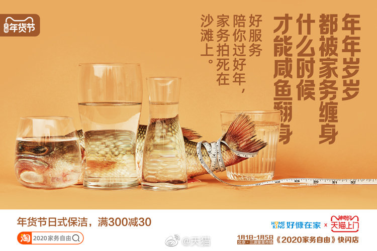 新的一年,天猫年货节助你实现#2020家务自由#! 一到快过年,家务好像会繁殖,越做越多!“神奇的天猫上门” 联合“好慷在家”包下了北京三源里菜市场开启“家务自由快闪店”线下活动,热腾腾的瓜果蔬菜和好服务新年“粘”在一起了!采购年货的同时也要把好服务带回家鸭~