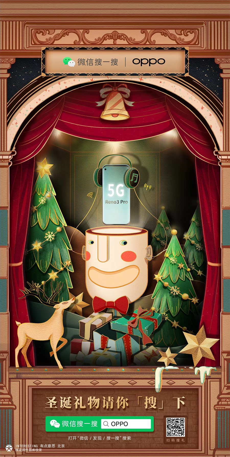 这是一个跨时许久的案例整理回顾,有点意思第一次尝试小程序为主的项目,经过了一段时间的整理归纳,终于可以呈现给大家。 2019年圣诞节,微信搜一搜联合12家品牌给大家圣诞礼物,以此传递「你喜欢的品牌,用微信就能搜」。拉动用户在微信搜一搜内进行搜索,提升微信搜一搜品牌专区的价值认知。 为此有点意思为微信搜一搜呈现了一套精彩的视觉物料,传递主题圣诞礼物,请你「搜」下。