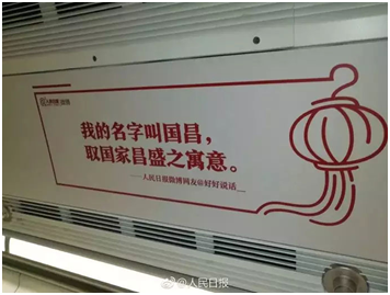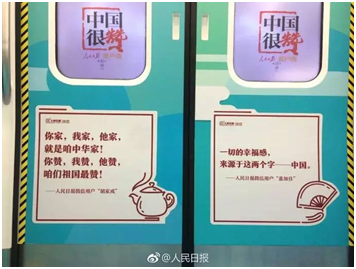这趟地铁是”中国很赞“主题地铁成都专列,而文案是人民日报从群众中征集而来的,近300条的留言,满满都是对祖国的信任和热爱。