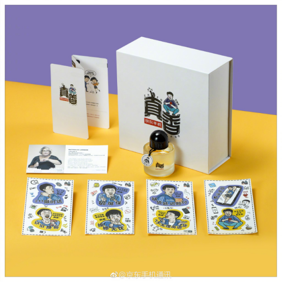 不仅是视频广告,京东手机同时发布了“真香水”和王境泽的沙雕表情包贴纸。