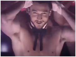 暗红的灯光,禁欲系眼神,胸肌腹肌还嫌不够?蝴蝶结系起来。(这是男版兔女郎的节奏?)