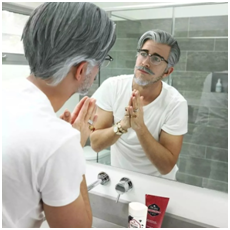 新形象一改之前的慈祥面容,突然变成了时髦性感+商务范的痞大叔。