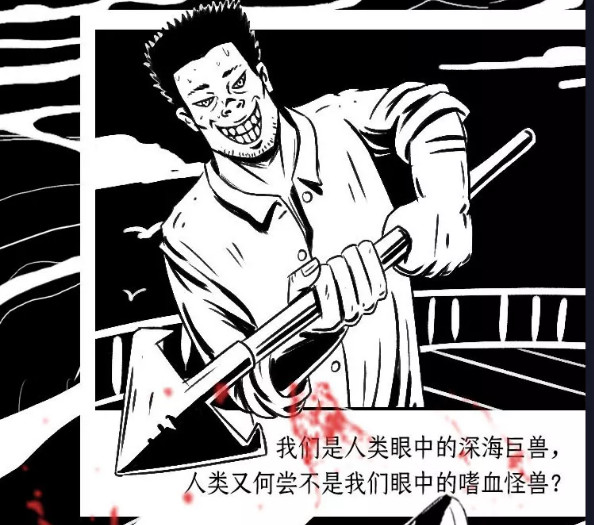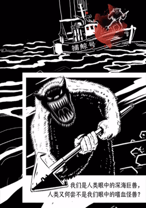 万万没想到的是,H5最后出现了神转折,“恶魔”真身现身,我们才发现,原来真正的“恶魔”是我们!被屠杀的对象并非其它,而是——“鲸鱼”!
