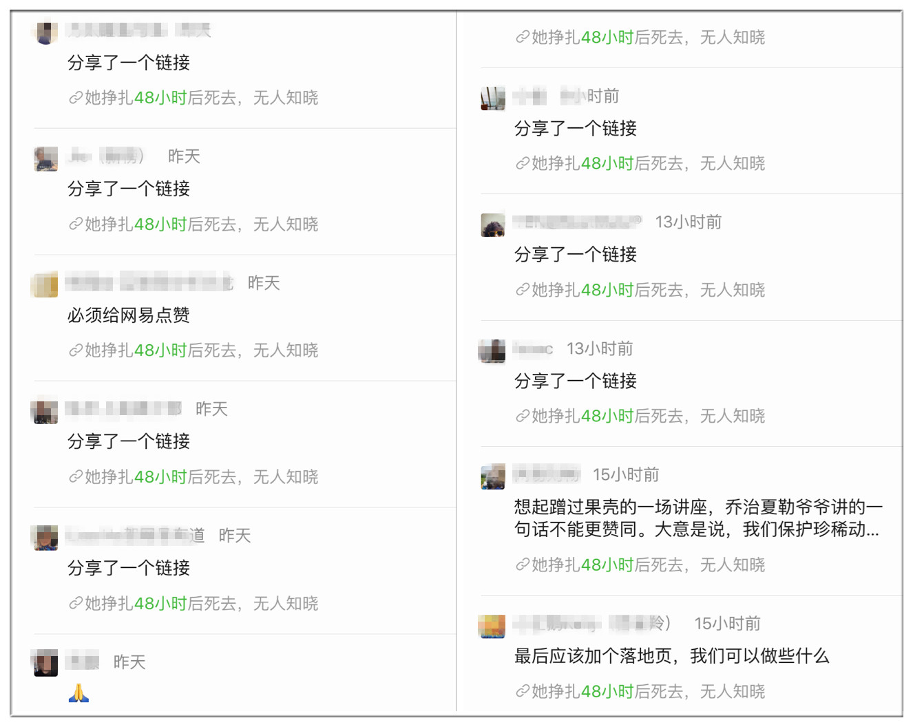 网易新闻哒哒:网易新闻哒哒做出过很多刷屏案例,去年的六一《滑向童年》、《哈利波特》20周年策划,今年四月份刷屏的《睡姿大比拼》也是我们的作品。作为网易新闻旗下策划团队,网易哒哒不断在探索内容传播的新方式,也一直非常关注比如动物保护之类有意义的话题,像去年哒哒曾经发表过文章《永别了,人类,我是白鱀豚》,也引起了很大的社会关注。