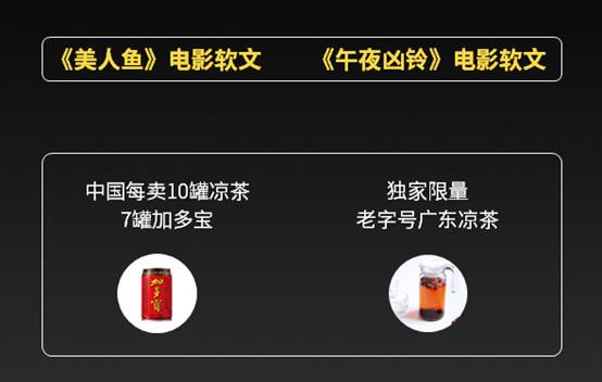 如果你需要为加多宝和独家限量的老字号广东凉茶做广告投放,一个投放在《美人鱼》中,另一个投放在《午夜凶铃》。这时你会选择什么渠道呢?