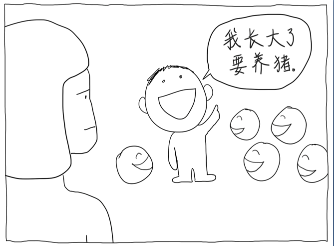 当老师让我回答时,我说:我长大了要养猪。