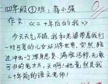 再看看这个,蒋小强同学的作文《二十年后的我》: